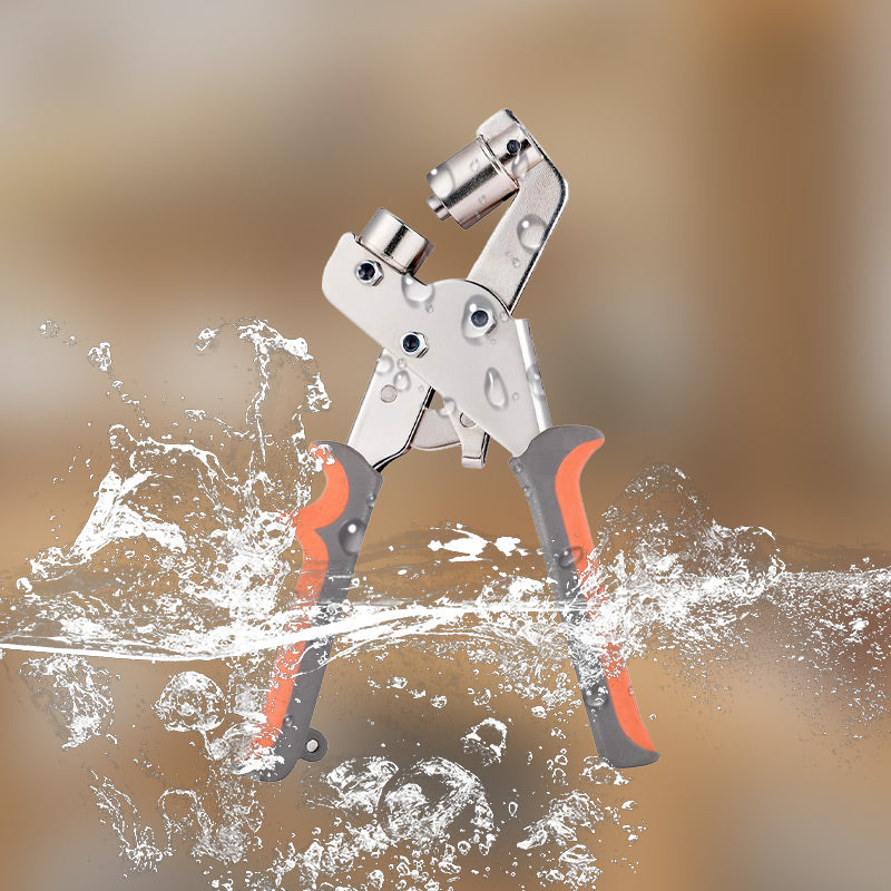 HÅLLBAR KONSTRUKTION - Tillverkad av högkvalitativa material, är Öljettång för Presenningar byggd för att klara av tung användning och hålla i flera år. Den robusta metallramen säkerställer att tången kan hantera det tryck som behövs för att slå igenom tjocka tyger och skapa säkra öglor utan att böjas eller gå sönder.