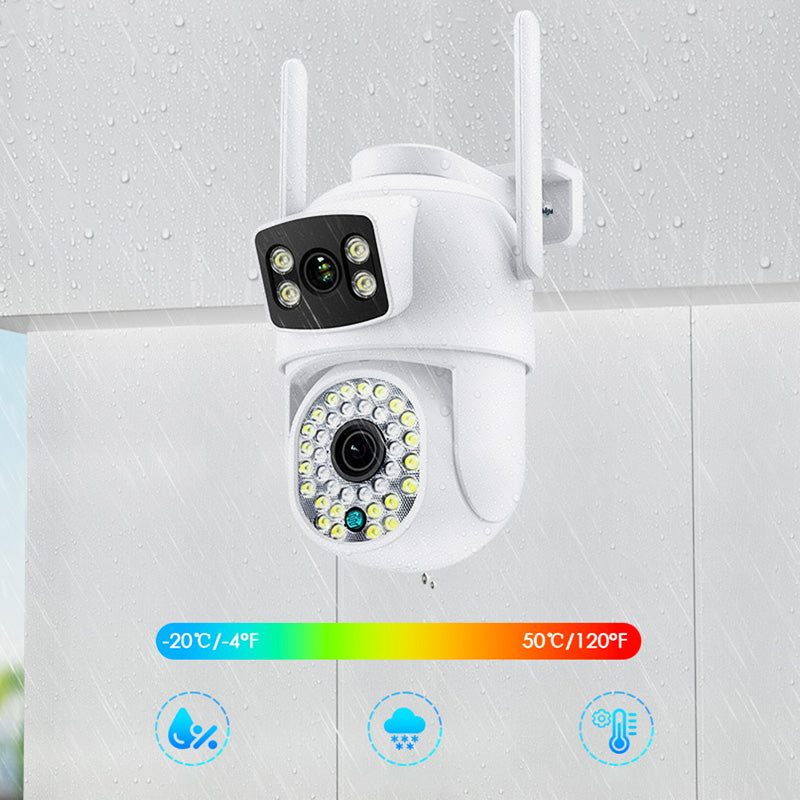 DUAL LINS-SYSTEM: Utrustad med två högupplösta linser som ger en omfattande vy med flera vinklar, vilket förbättrar säkerheten och täckningen både inomhus och utomhus.